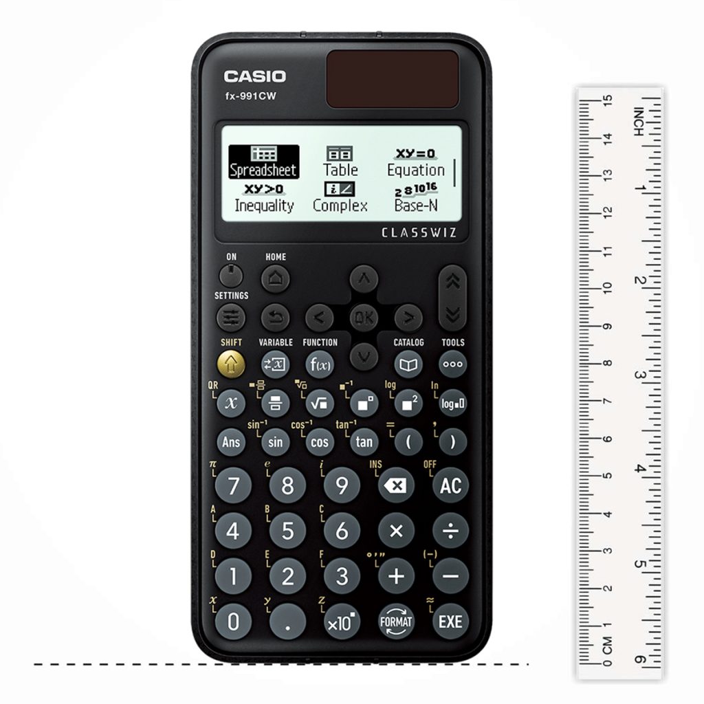 The Casio CW is a non-programmable, non-graphing scientific calculator built for school and exam use. It features a high-resolution natural-textbook dot-matrix LCD (10+2 digits) with an icon menu, plastic keys, and solar + battery power (approx. 2-year battery life) with auto power-off. Despite exam compliance (GCSE/AS/A Level/SSC/HSC), it packs advanced tools—matrices, vectors, complex numbers, base-n and logic, calculus (diff/integration), SOLVE, statistics with regressions, spreadsheet/numeric table—plus 9-variable memory, QR code connectivity, and a protective hard case.
